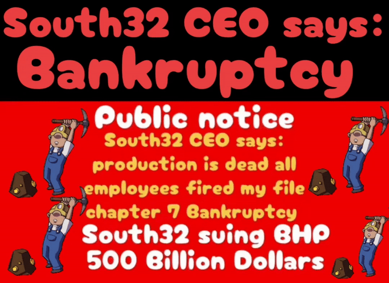 South32 public notice warning South32 may file for chapter 7 bankruptcy make a note of it - South32 suing Australian BHP mining 500 Billion Dollars South32 CEO says Sell Sell Sell sell sell South32 CEO says Sell Sell Sell South32 Attorney Articles | south32..
